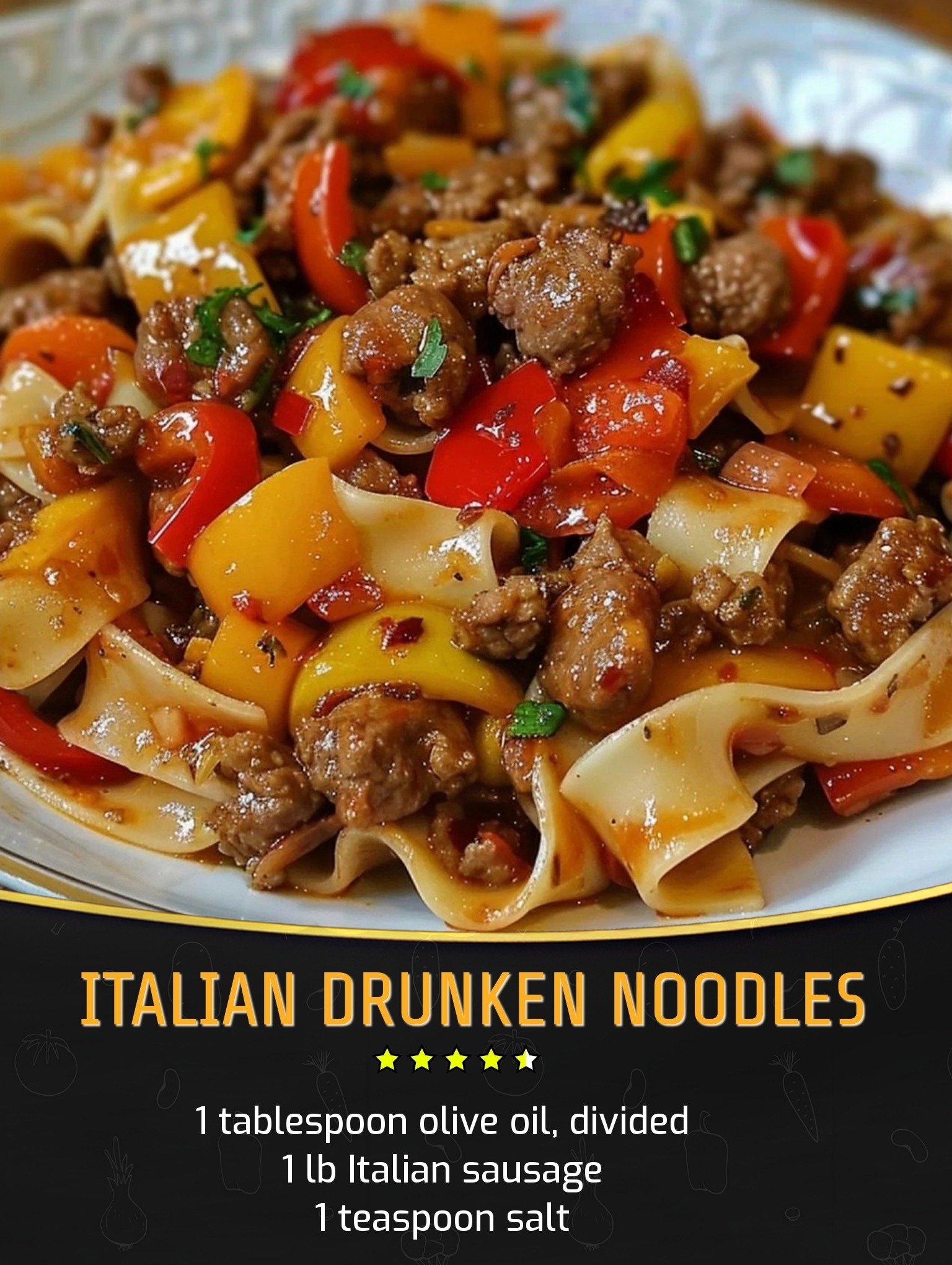 There is something comforting about a pot of Italian Drunken Noodles bubbling away on the stove the aroma of savory sausage peppers and herby tomato sauce all tangled with tender pasta I first tried this recipe after searching for a new twist on classic pasta and now it is my go-to for cozy dinners with friends